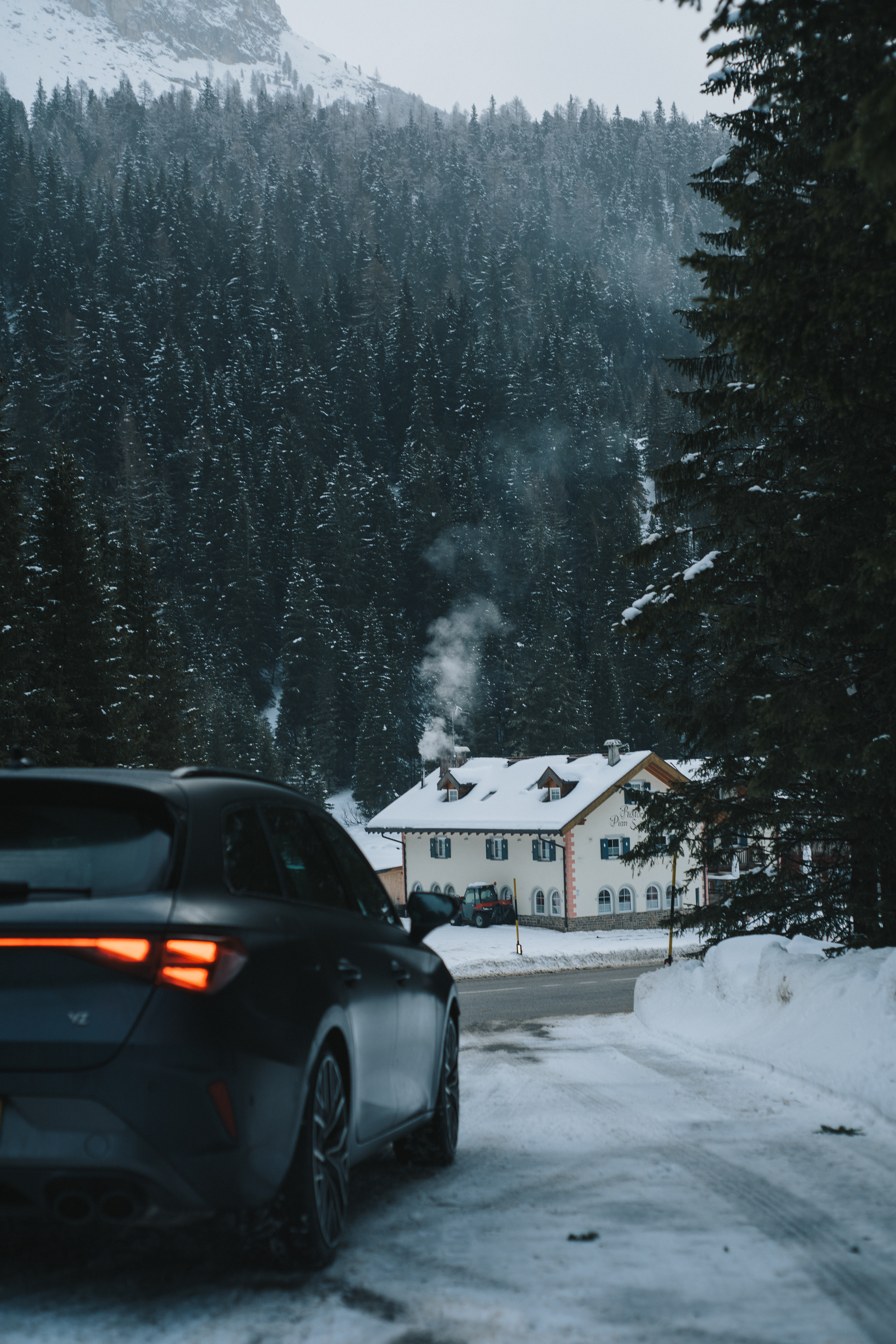 A collection of photos from behind the scenes of the Cupra shoot in the Dolomites